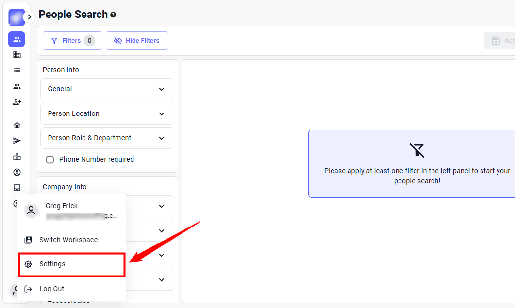 Step 1: Log in to your account and click the Account icon from the bottom left sidebar.