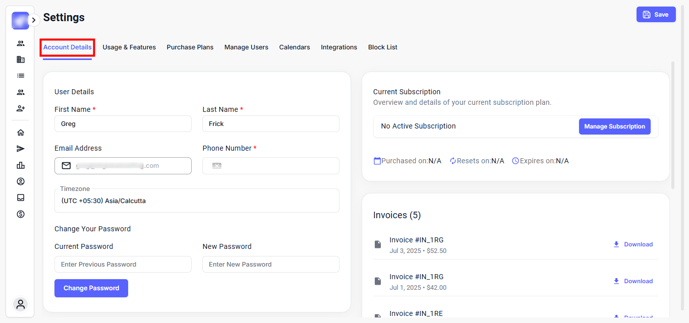 Keeping your account information up to date ensures seamless access, personalized communication, and accurate workspace identity. Whether you're updating your contact number, company details, switching to the new UI, or track invoices, the Account Details section keeps everything within your control.