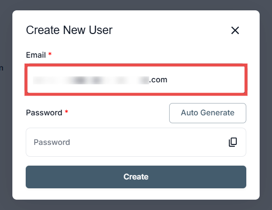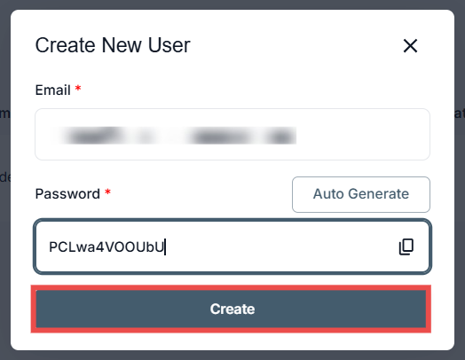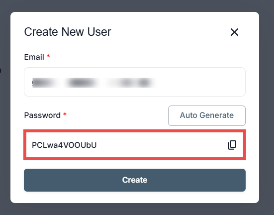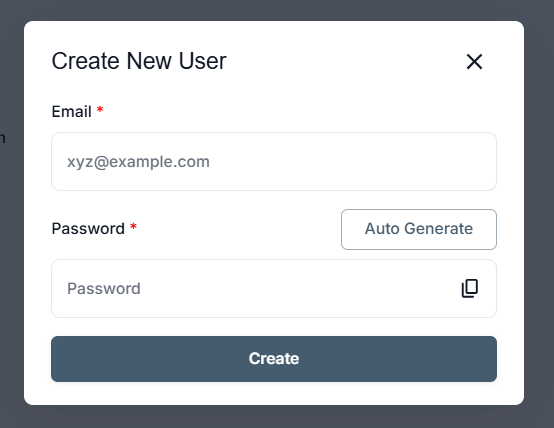 Add a new user by entering their email and generating a secure password.