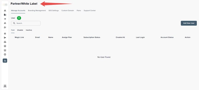 Step 1: Log in to your account and click on the White Label option on the Left-hand sidebar.