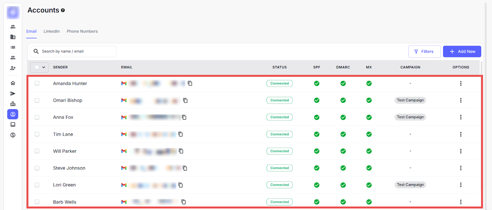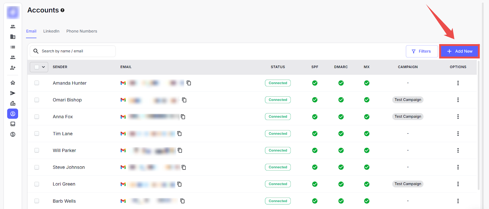 Step 2: By default, you will be navigated to the Email Accounts tab. Here, you can view all connected email accounts.