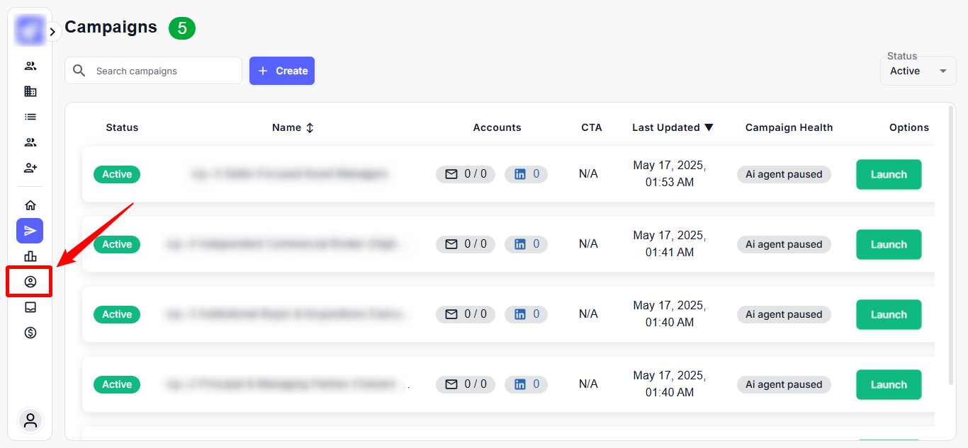 Step 1: Log in to your account and click on the Accounts icon from the left-hand sidebar.
