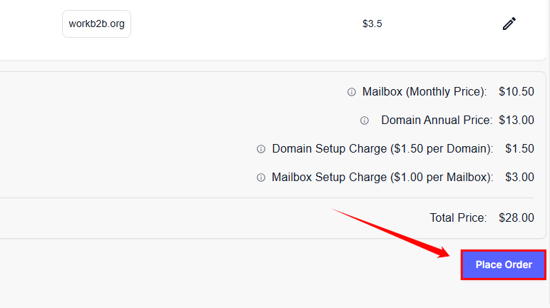 Step 11: Once you've filled in the details, click on the Place Order button to add the domain to the order.