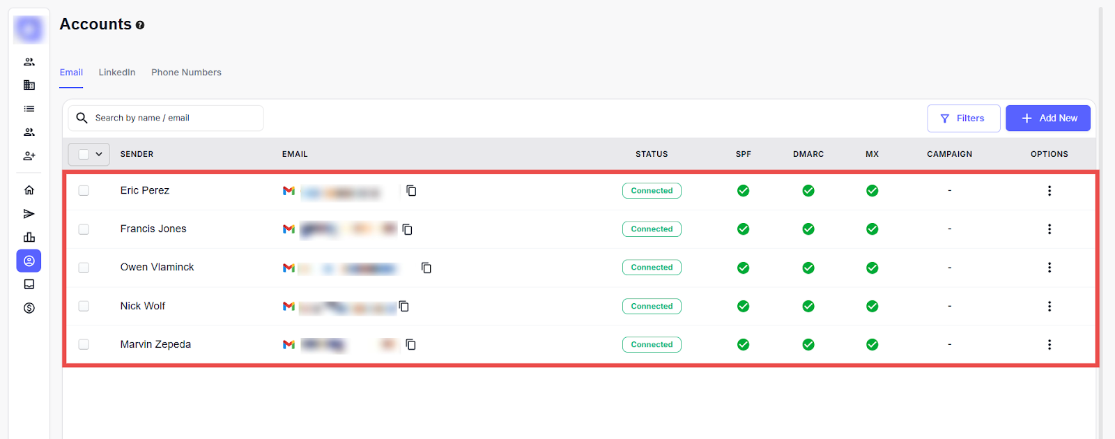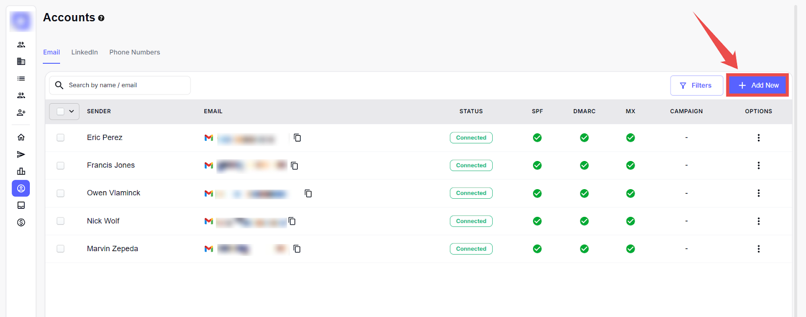 Step 2: By default, you will be navigated to the Email Accounts tab. Here, you can view all connected email accounts.