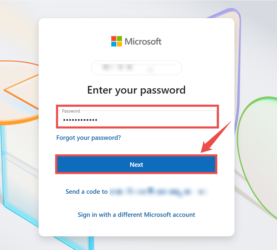 Step 5: Enter your Microsoft account password and click Next to complete the authentication process.