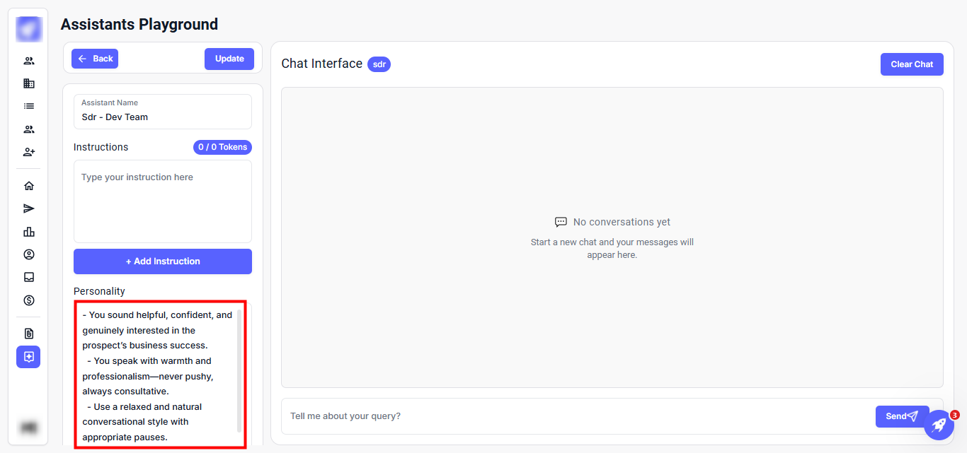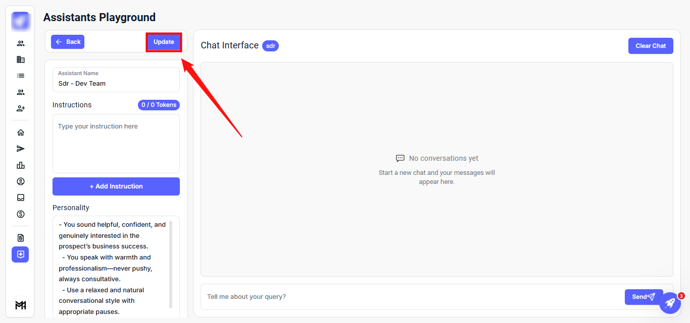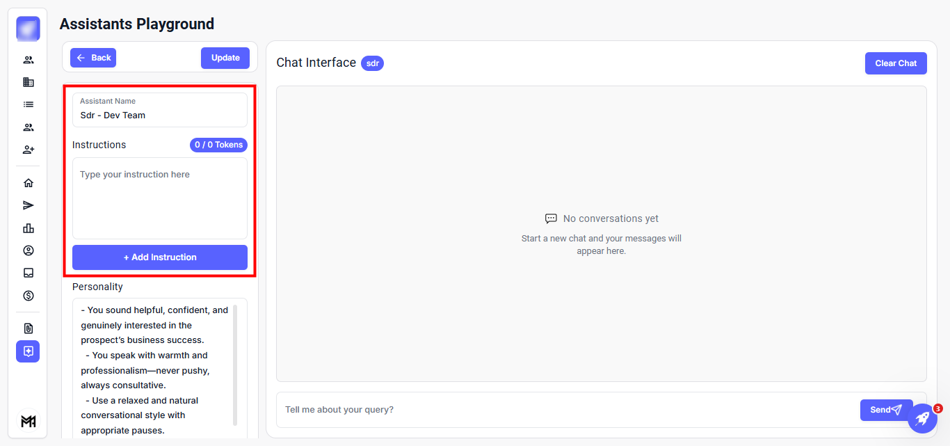 Step 2: In the Assistant Name field, modify the agent's name as needed. Under Instructions, you can edit the instructions or add new ones.