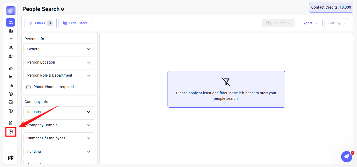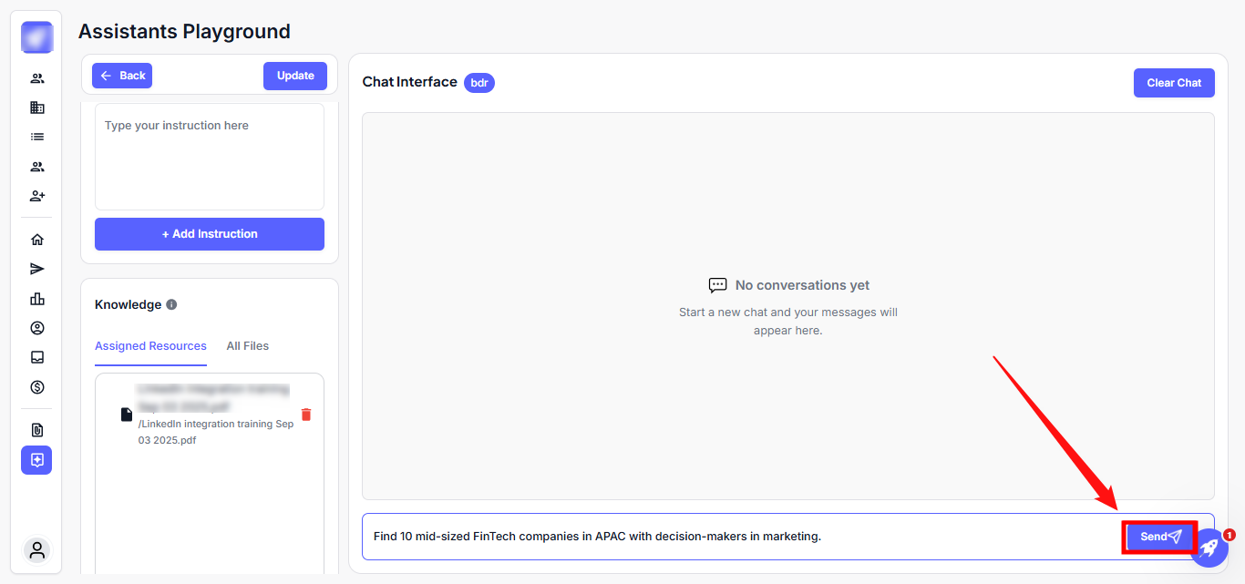 Step 2: In the Chat Interface, type your request to begin prospect discovery and click Send.