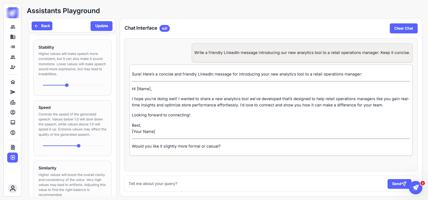 The SDR Agent will produce optimized emails, scripts, or messages, ready to copy, tweak if needed, and send to your prospects.