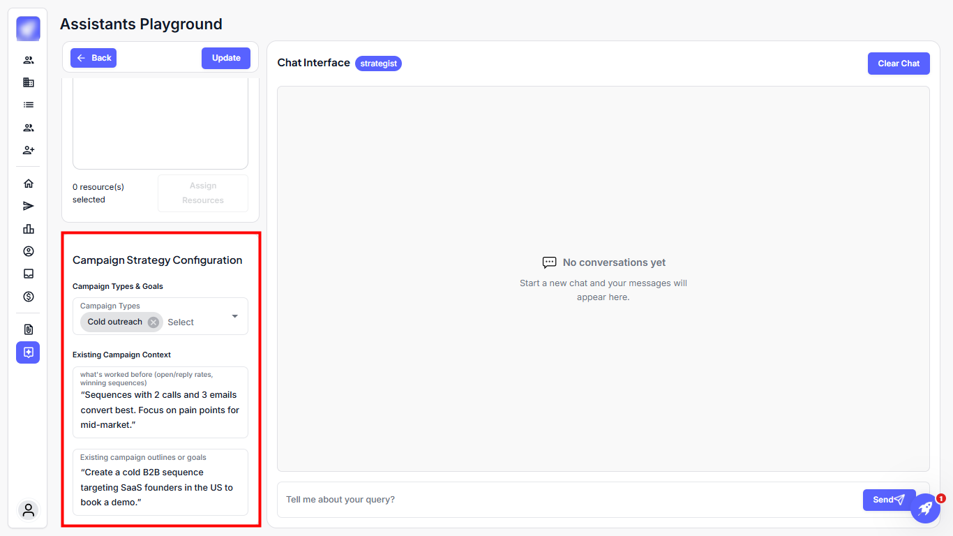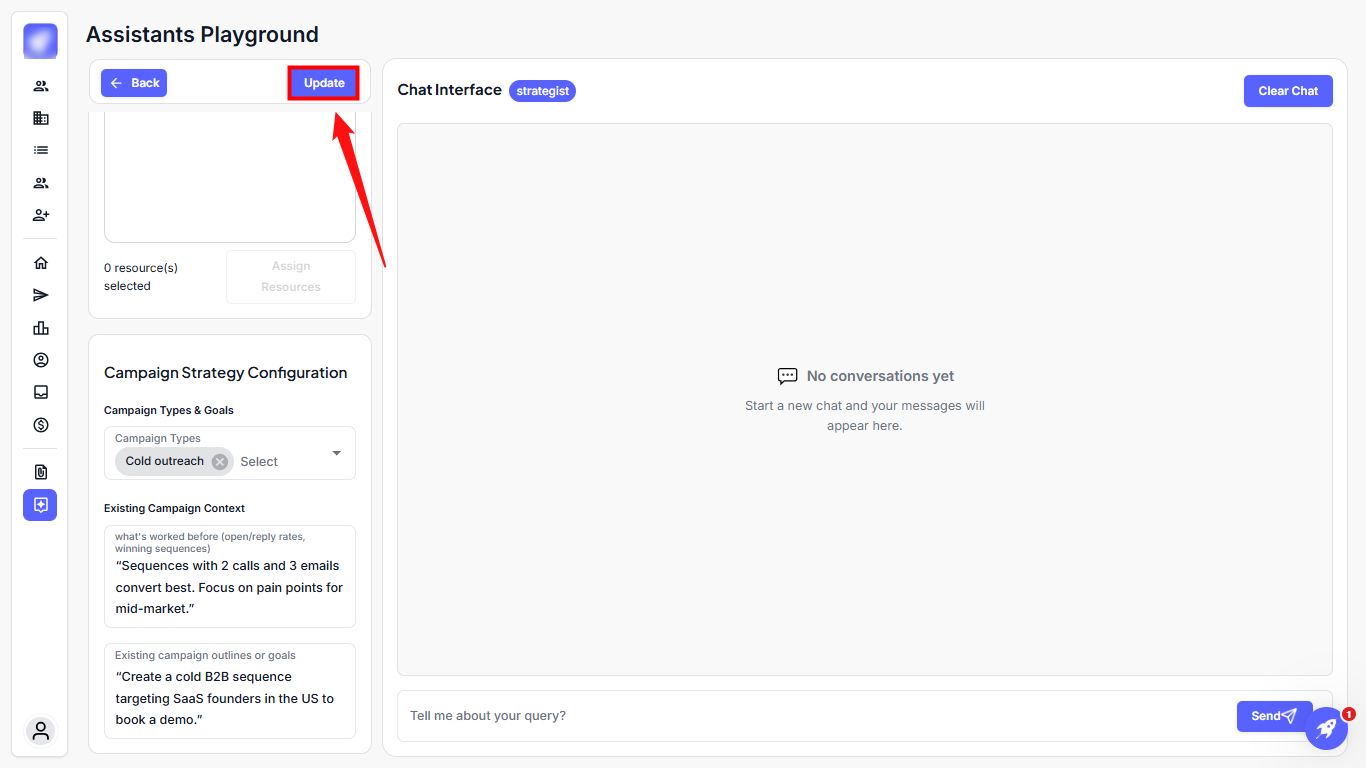 Step 1: Go to the Strategist agent and configure the Campaign Strategy to define the scope and focus of your campaign.