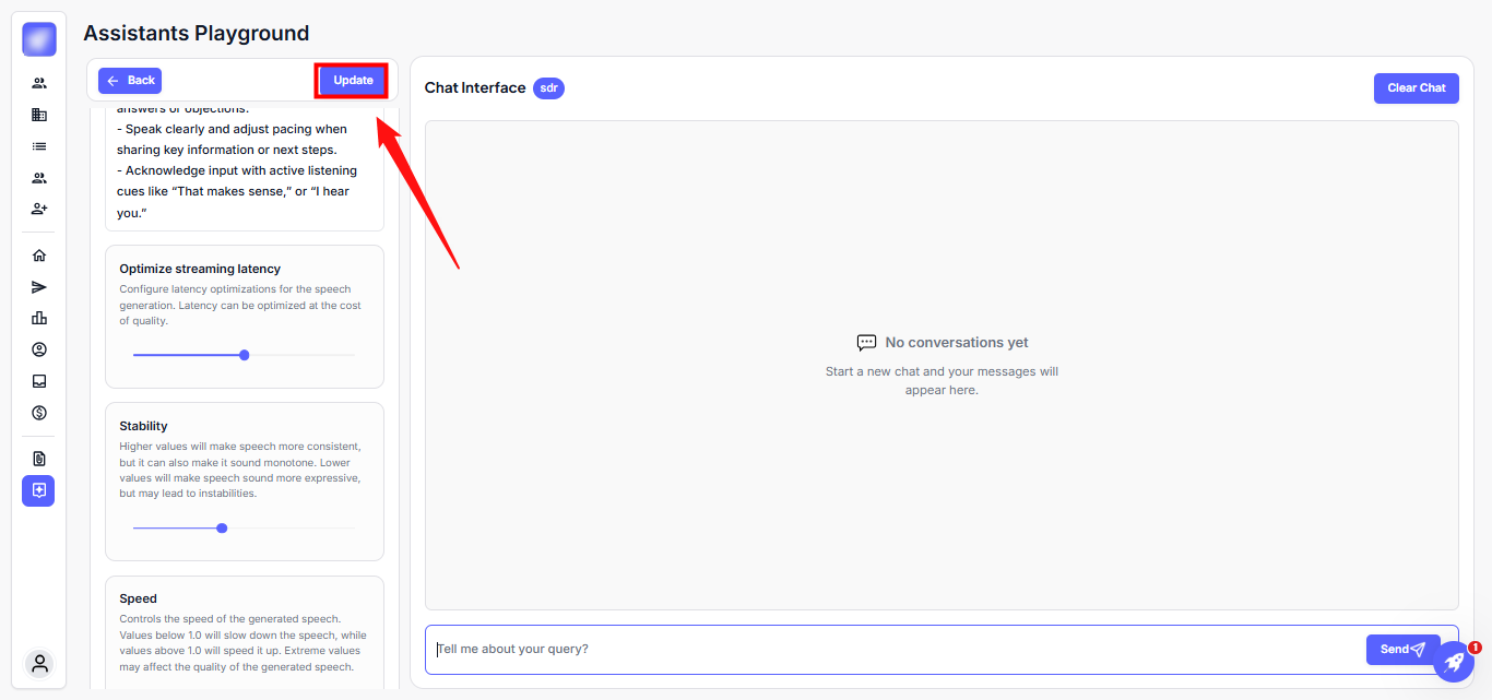 Step 4: Once all changes are made, click Update to save the updates to the agent.