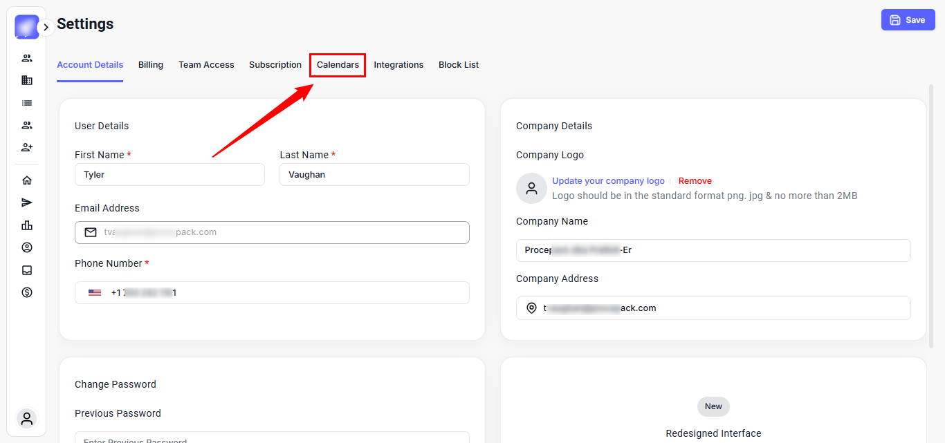 Step 3: In the Settings page, click the Calendar tab.