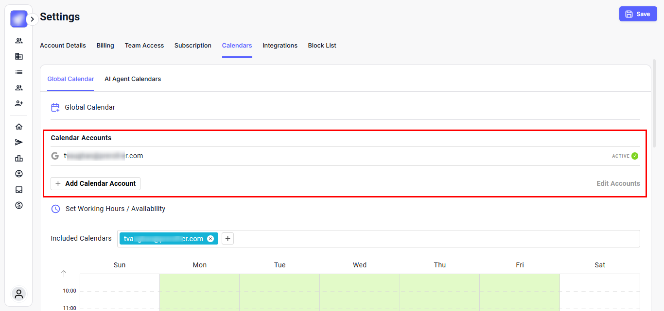 Connected Calendar Accounts