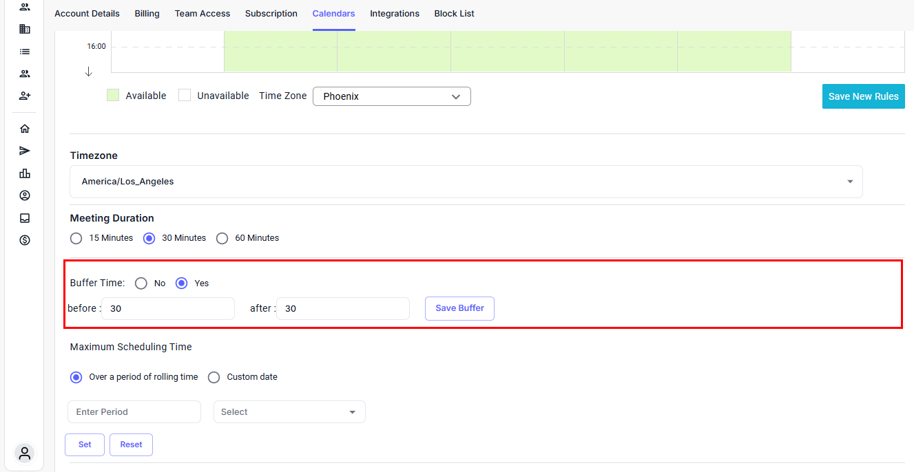 Buffer times help avoid back-to-back meetings and give you space to prepare, follow up, or take a break.