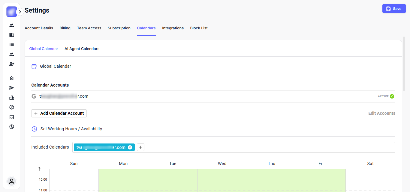 Calendar Settings (View & Configure Availability)