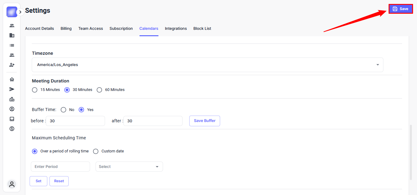 Set your availability, integrate calendars, and streamline scheduling; everything you need to manage meeting times is in one place. Whether you're syncing your external calendar, defining working hours, or preventing last-minute bookings, the Calendar Settings page gives you full control over how and when people can schedule time with you.