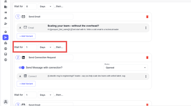 Step 3: Review follow-up emails and make sure delays are logical (e.g., 1–3 days between steps).