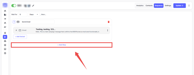 Step 10: Click on the + Add Step button to add a new cold email to your campaign sequence.