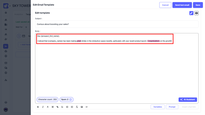This will allow you to create a cold email for your campaign from scratch or an AI-assisted option. For more information, refer to this document.