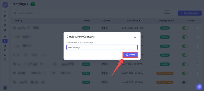 Step 3: A modal window will appear where you can enter the Campaign name.