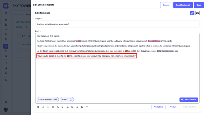 The subject line is the first thing your prospect sees, so it’s crucial to make it attention-grabbing. A well-crafted subject line should spark curiosity and encourage the recipient to open the email. Here’s how to make it effective: