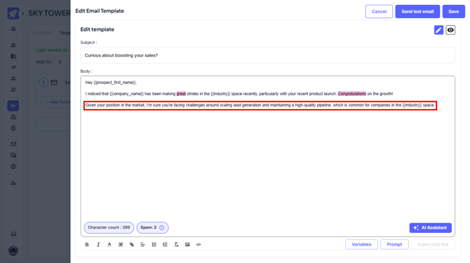 Follow this proven structure when writing or prompting inside the Email Editor. This helps you create cold emails that drive more replies by combining personalization, AI prompt tags, and strong messaging using: