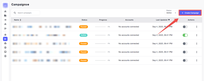 Step 2: Once you have navigated to the Campaigns dashboard, click the + Create Campaign button.
