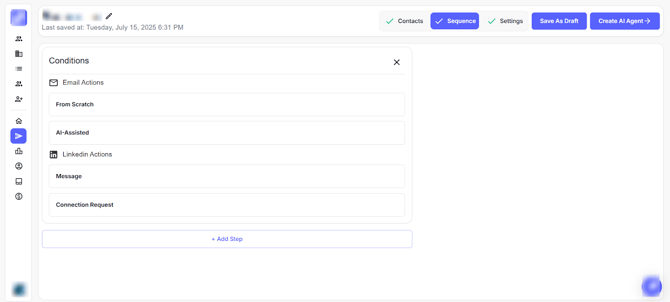 This will take you to the Sequence page, where you can start adding outreach steps to your campaign.
