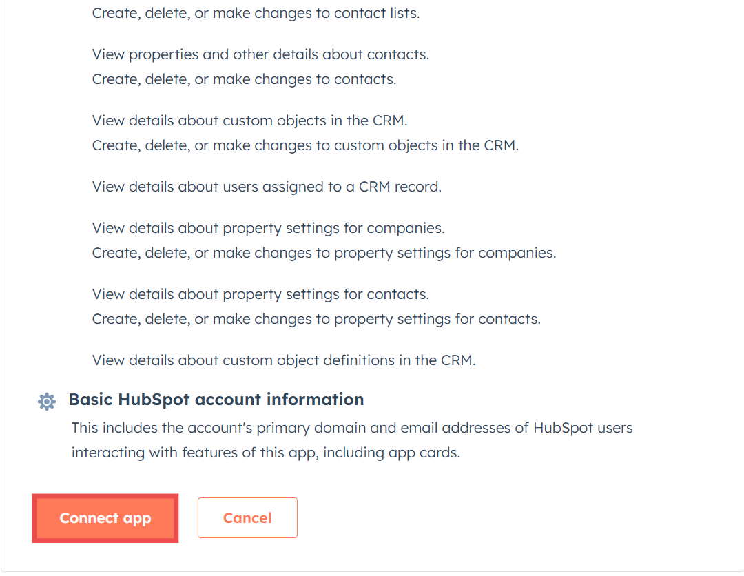 Step 4: Click on the Connect button to authorize access to your HubSpot CRM account.