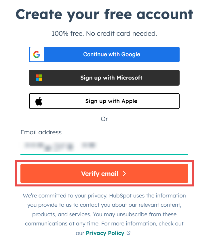 Step 1: Click on the Create Account button to create your HubSpot account.