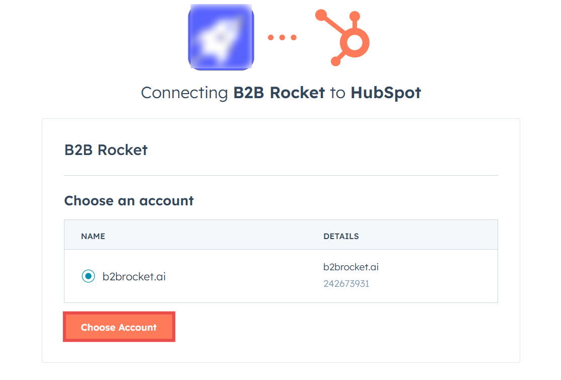 Step 4: Choose the account you want to integrate with HubSpot and click on the Choose account button.