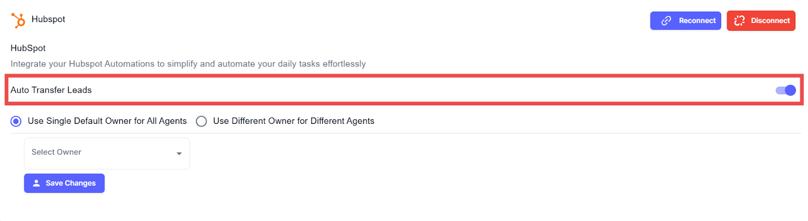 Set up your HubSpot integration to enable automatic lead syncing and ownership assignment within your CRM.
