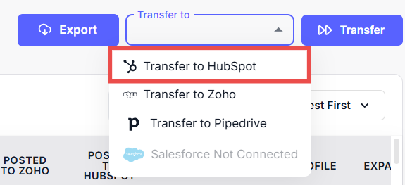 Step 5: Click on the Transfer button to transfer your lead to HubSpot.