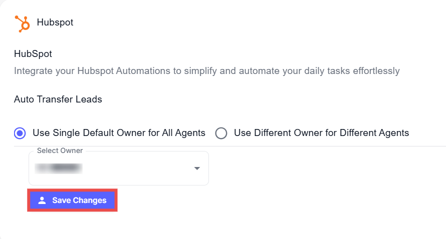 Step 2: Select the Use Single Default Owner for All Agents option to ensure all leads are transferred to one HubSpot user.