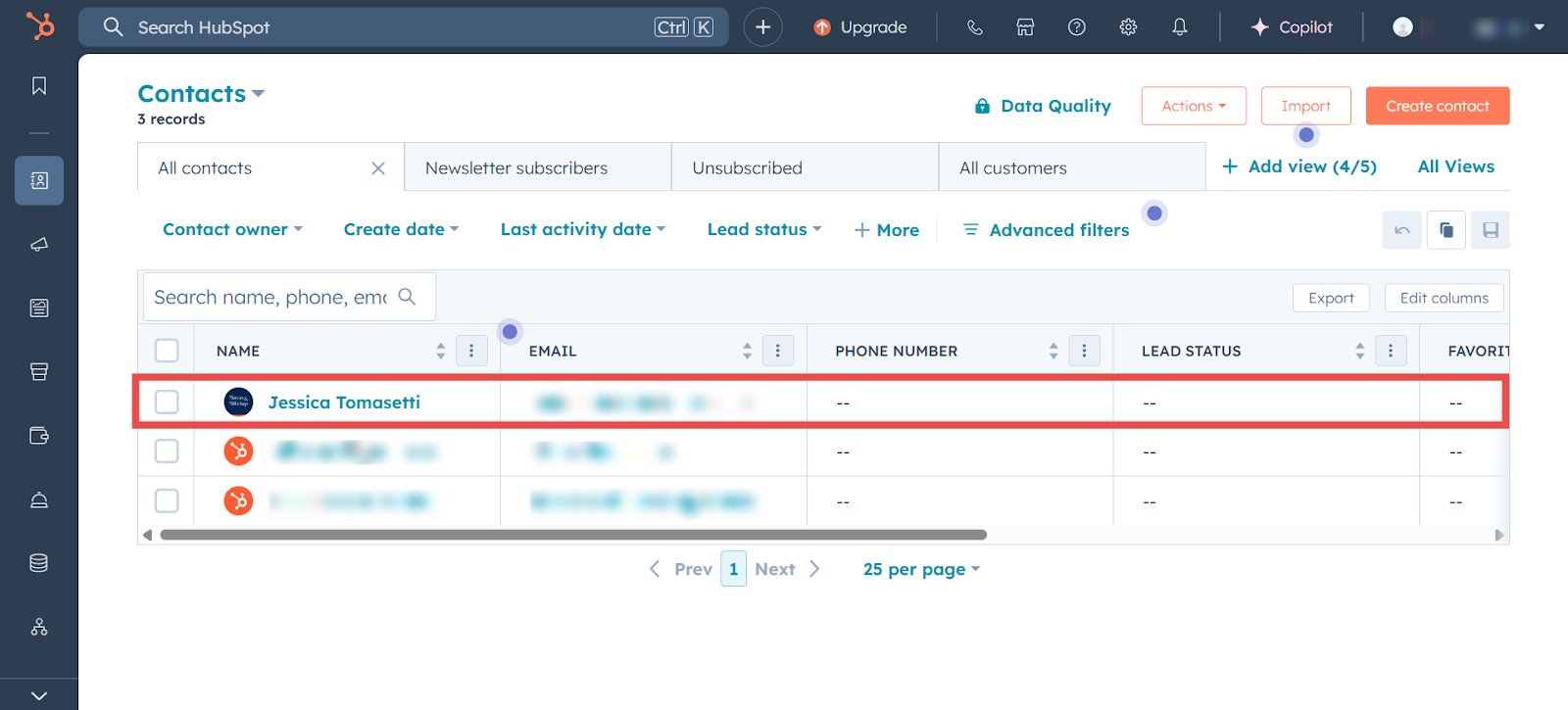 Step 2: Click on any of the leads that you want to transfer to HubSpot. For demonstration purposes, we will proceed with Jessica.