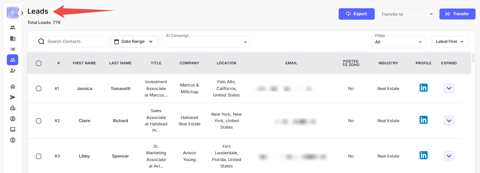 Step 1: Navigate to the Leads section from the sidebar.