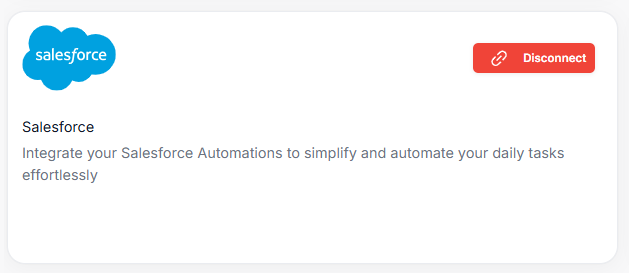 You will be navigated back to the Integration page, and your Salesforce account will be successfully connected.