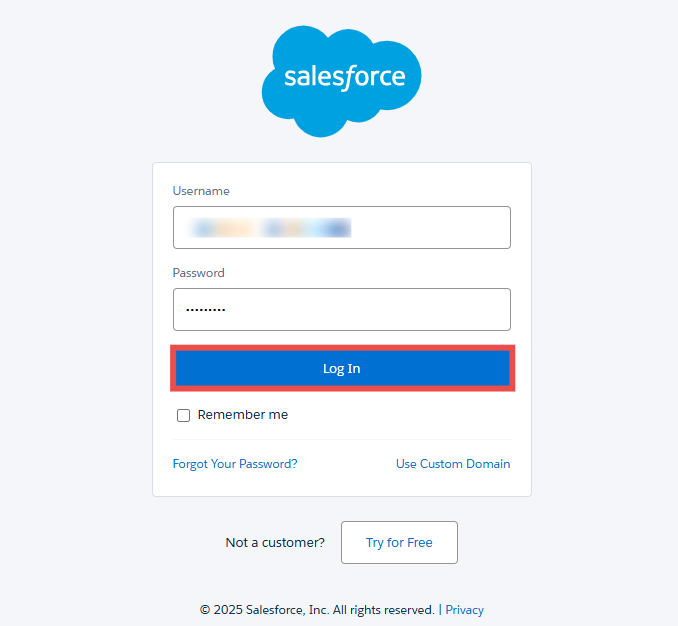 Step 1: Enter your Salesforce Username and Password in the field.