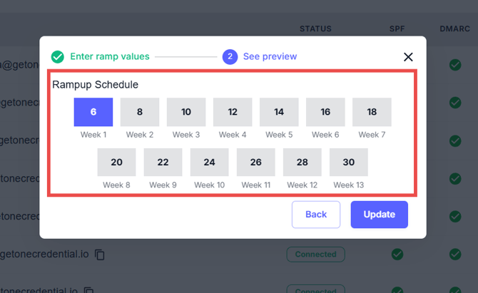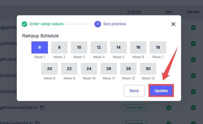 Step 5: Click on the Update button to apply your updated ramp-up schedule.