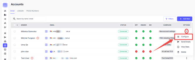 | INFO: A minimum of 45 mailboxes is required to maintain strong deliverability, safeguard domain reputation, and ensure scalable outreach across campaigns. Each mailbox has a daily sending limit (around 30–50 emails during ramp-up), and distributing volume across multiple mailboxes helps prevent oversending, reduce spam risks, and maintain consistent campaign performance. For more information, refer to this document. |