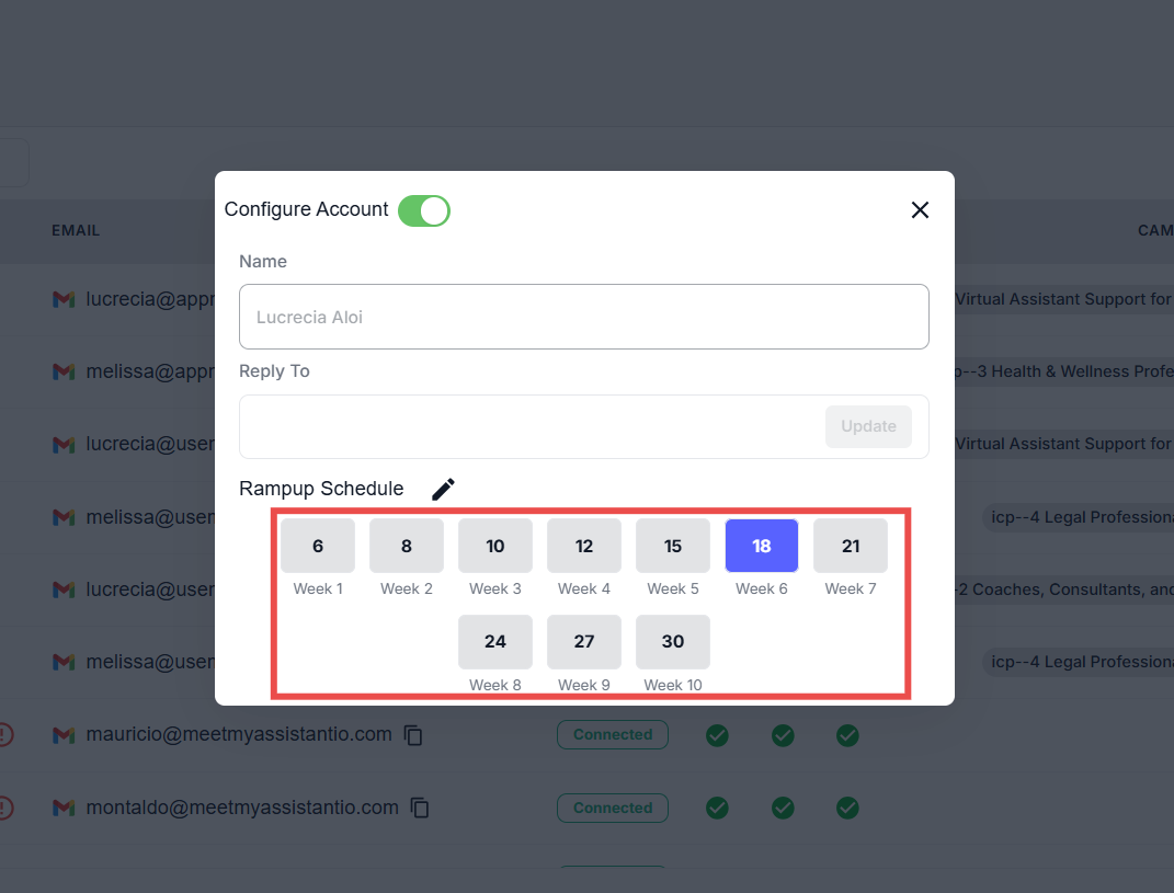 The platform uses a default ramp-up schedule that increases safely, either daily or weekly.