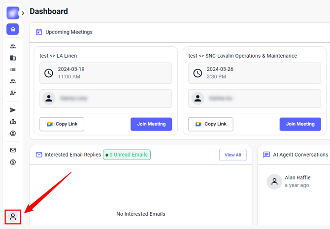Step 1: Log in to your account and click the Account icon in the bottom-left sidebar.