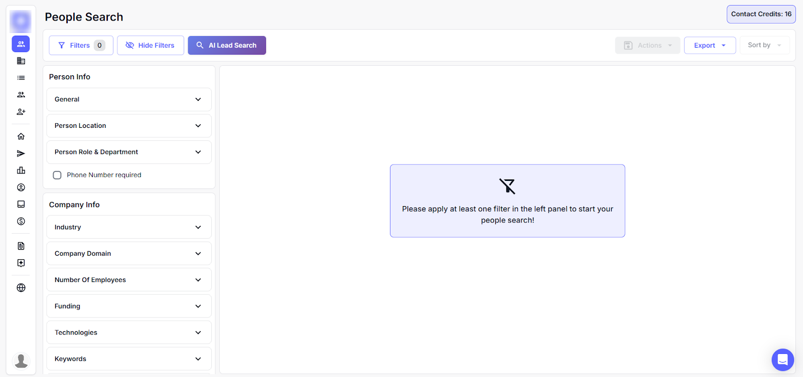 The Lead Finder helps you identify and target the right people and companies for your outreach campaigns. It allows you to apply smart filters based on both person-level and company-level data, so you can focus on high-potential leads only.