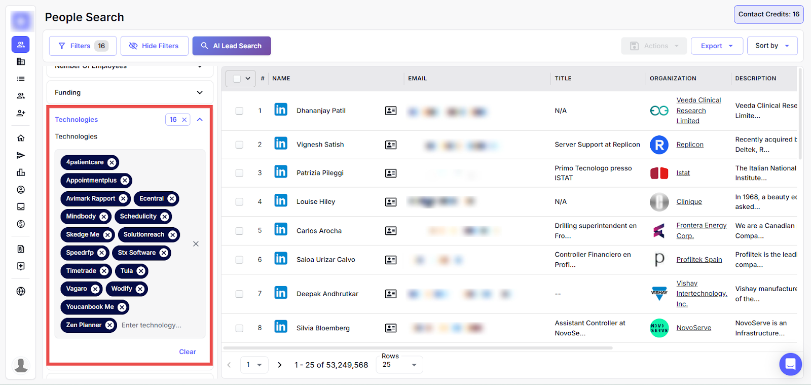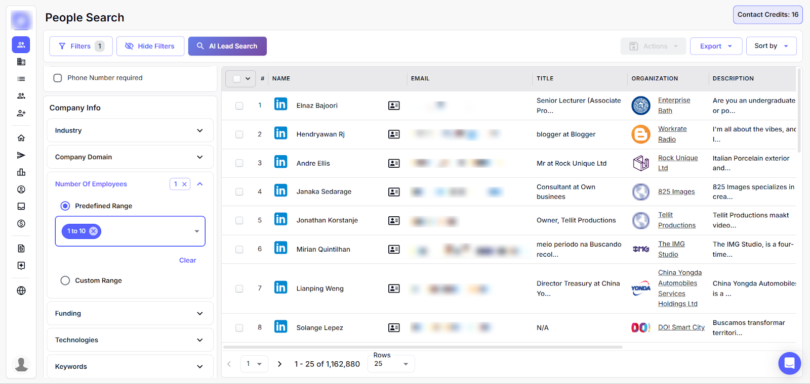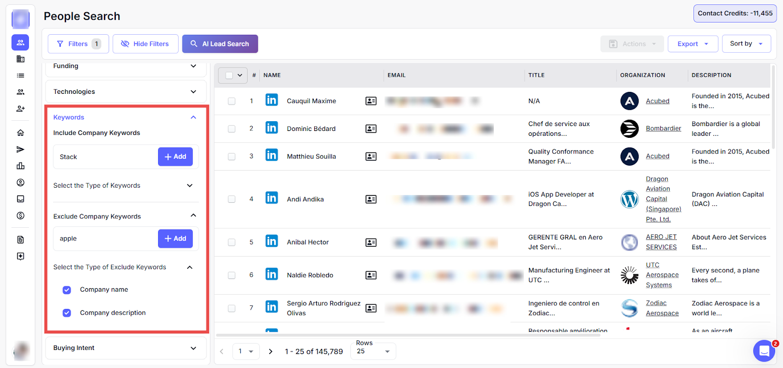 This section lets users refine their lead search using detailed company-related filters. You can zoom in on the following attributes to target the most relevant prospects for your campaign.