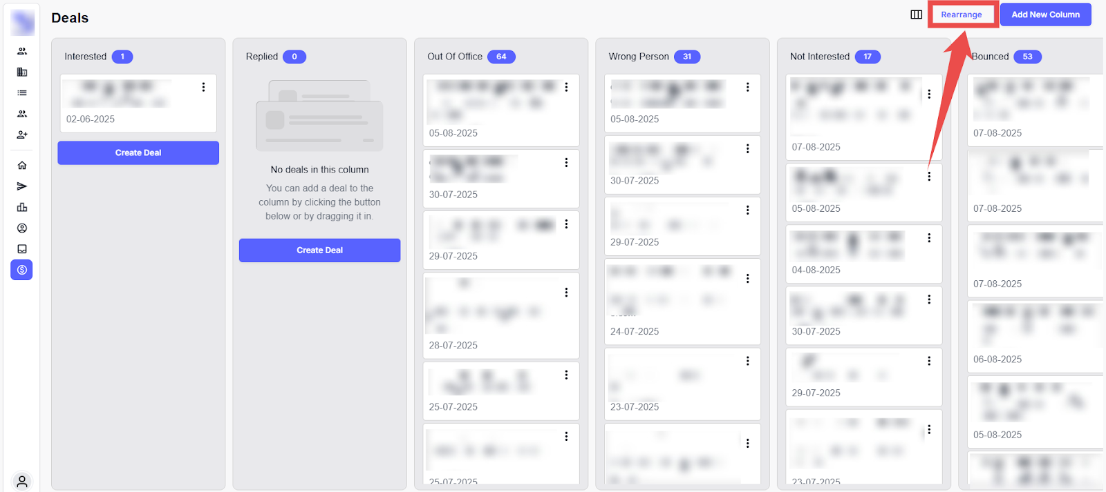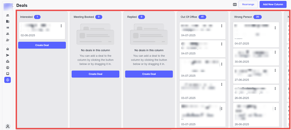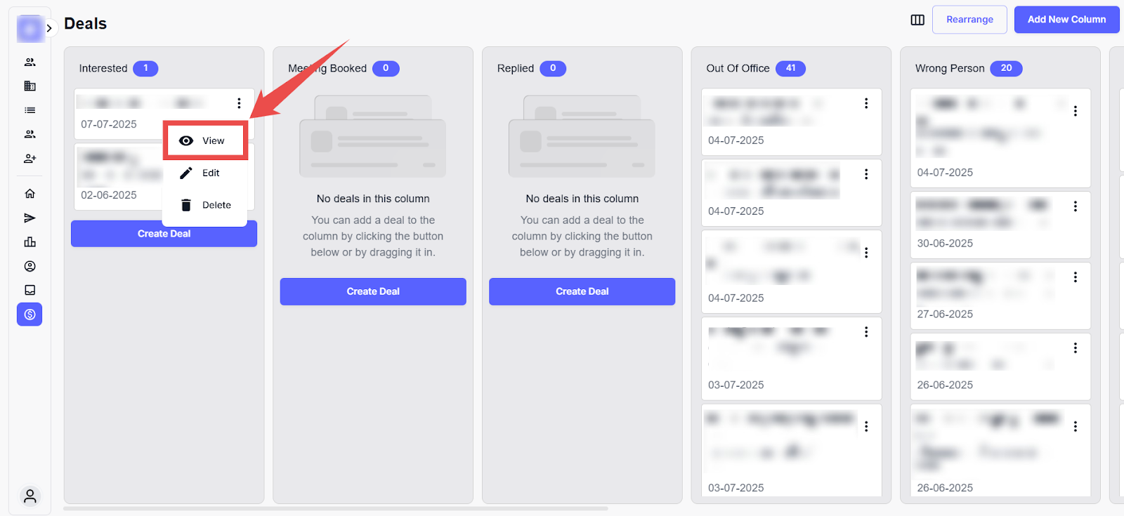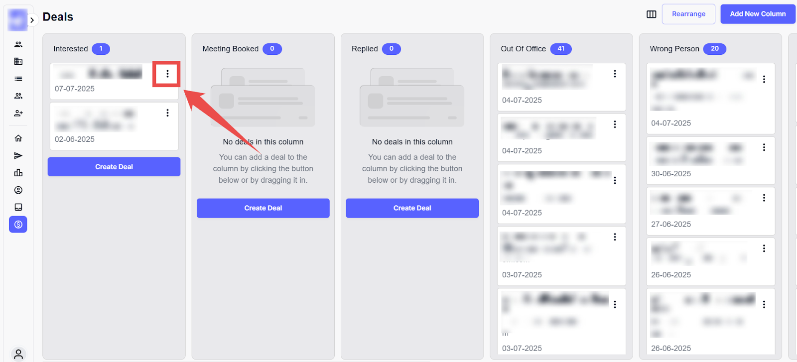 Step 2: Go to the column where you want to manage the deal (e.g., Interested, Meeting Booked, etc).