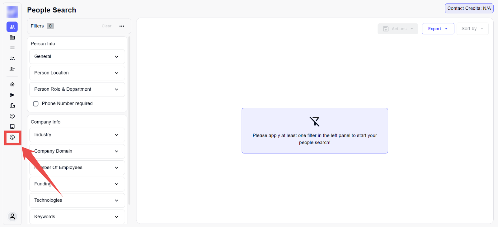 Step 1: Log in to your account and click the Deals icon on the left-side navigation menu.