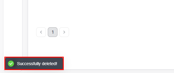 After clicking the Delete button, a confirmation message saying "Successfully deleted!.