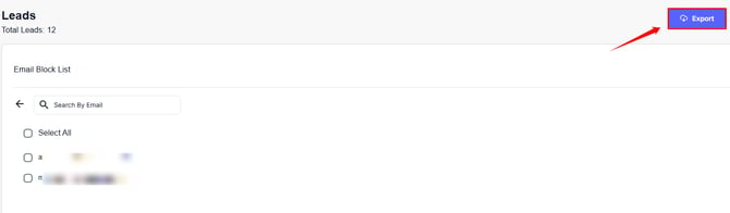 Click on the Export button located in the top right corner to download a file containing all the blocked email addresses.
