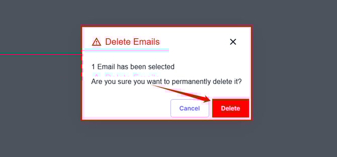 Step 3: A modal window will appear asking for confirmation. Click the Delete button to permanently remove the selected email from the blocklist.