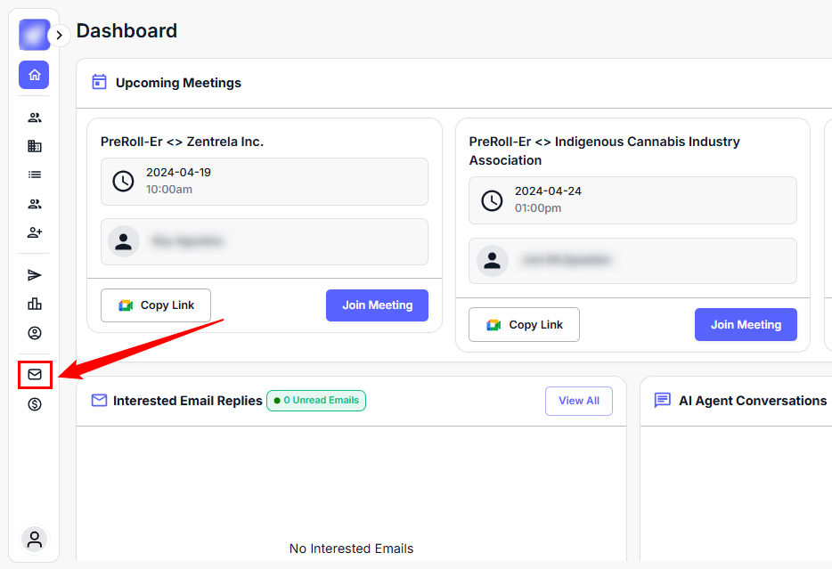 Step 2: You will land on the Email Inbox page by default. This section shows a list of all replies received across connected email accounts.
