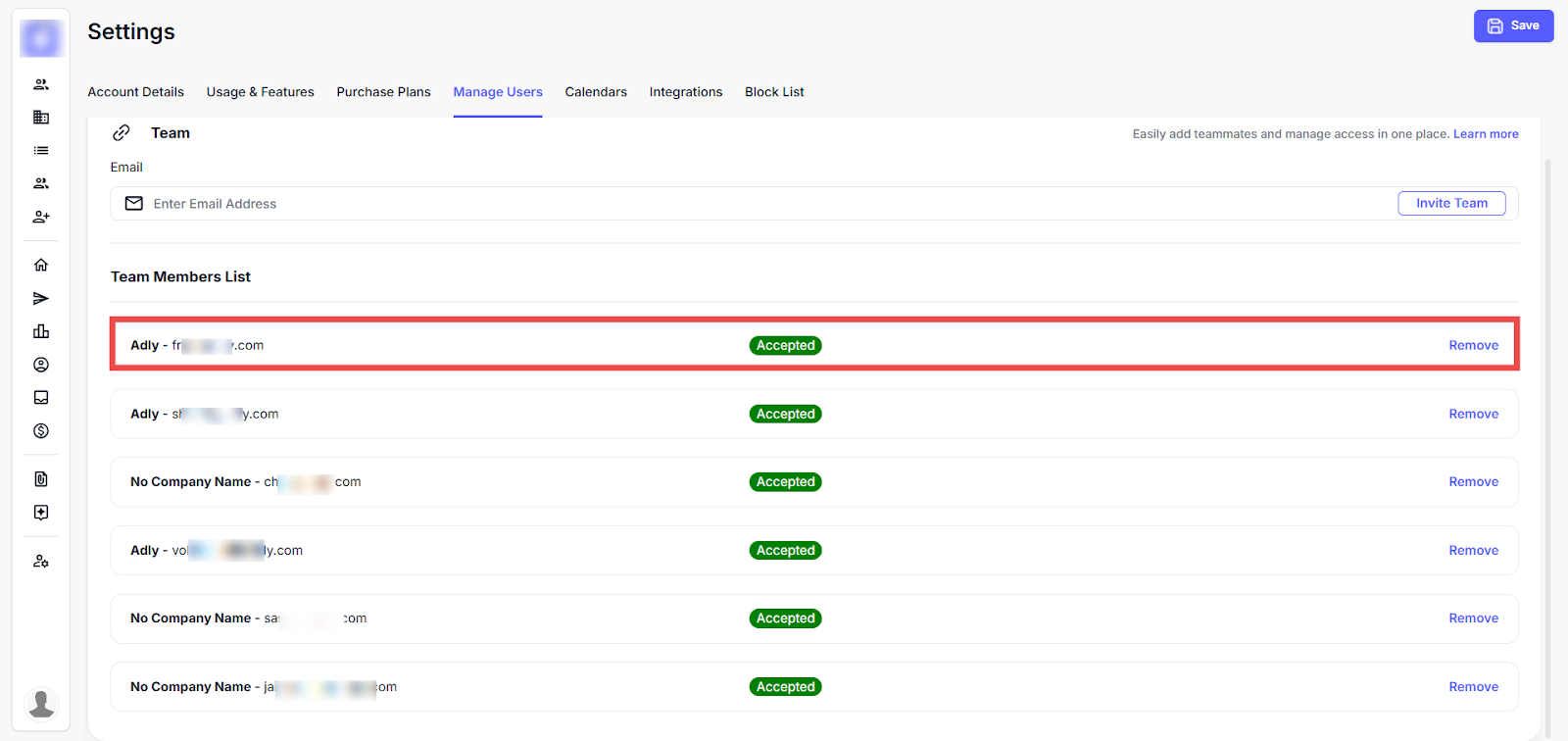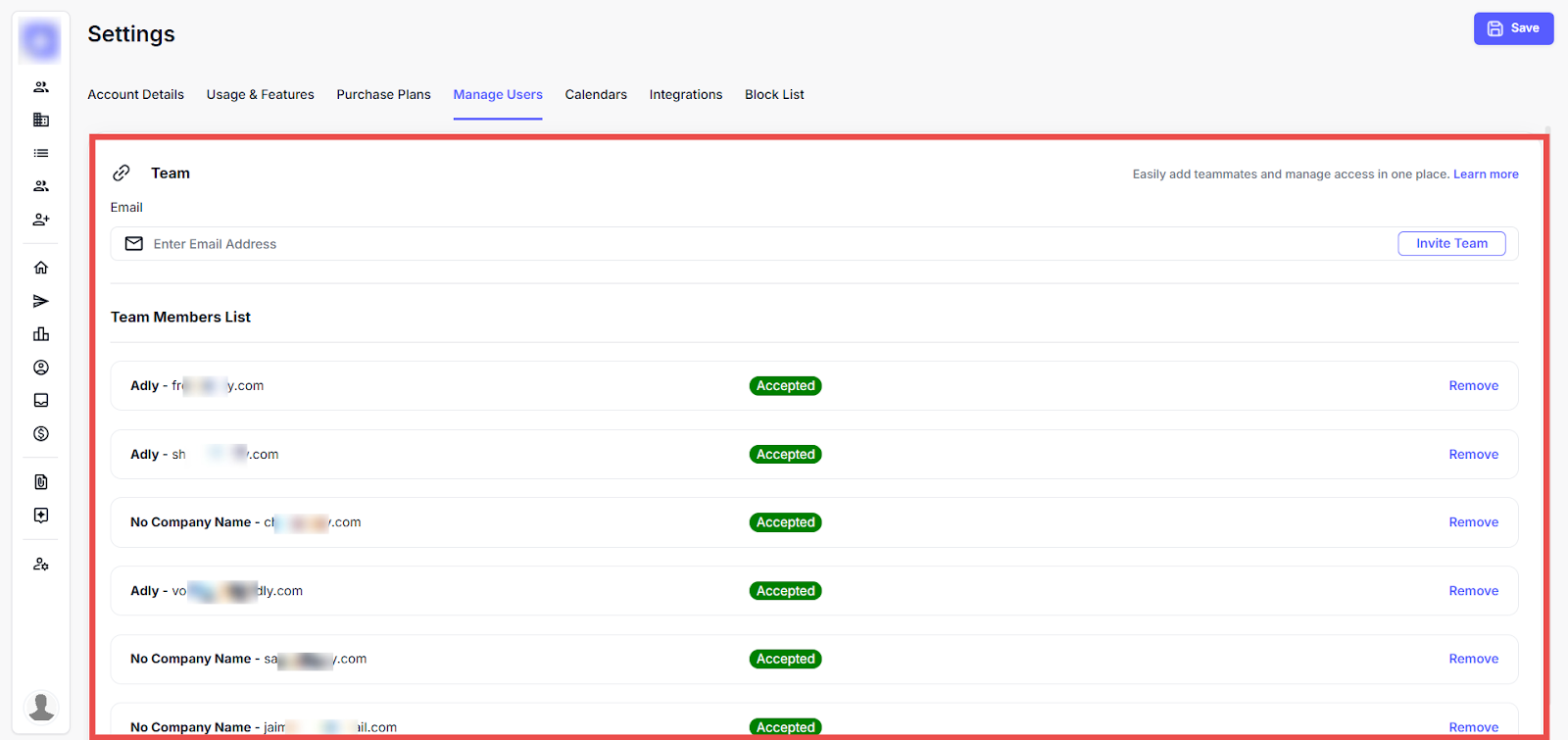 Effective collaboration begins with managing users seamlessly. The Manage Users panel lets you invite new members, monitor their invitation status, and remove members when needed — all from a single, easy-to-use interface.